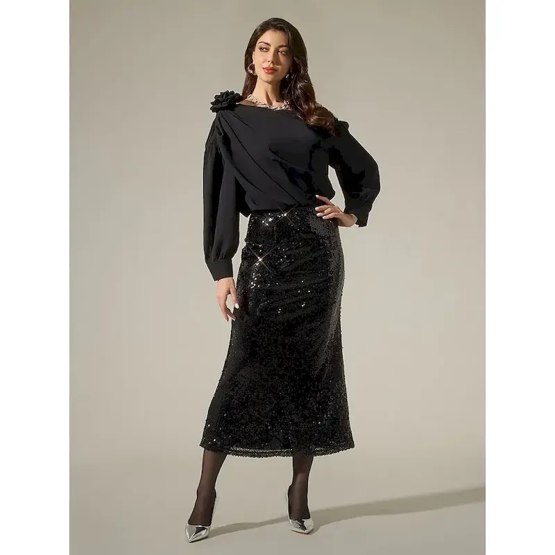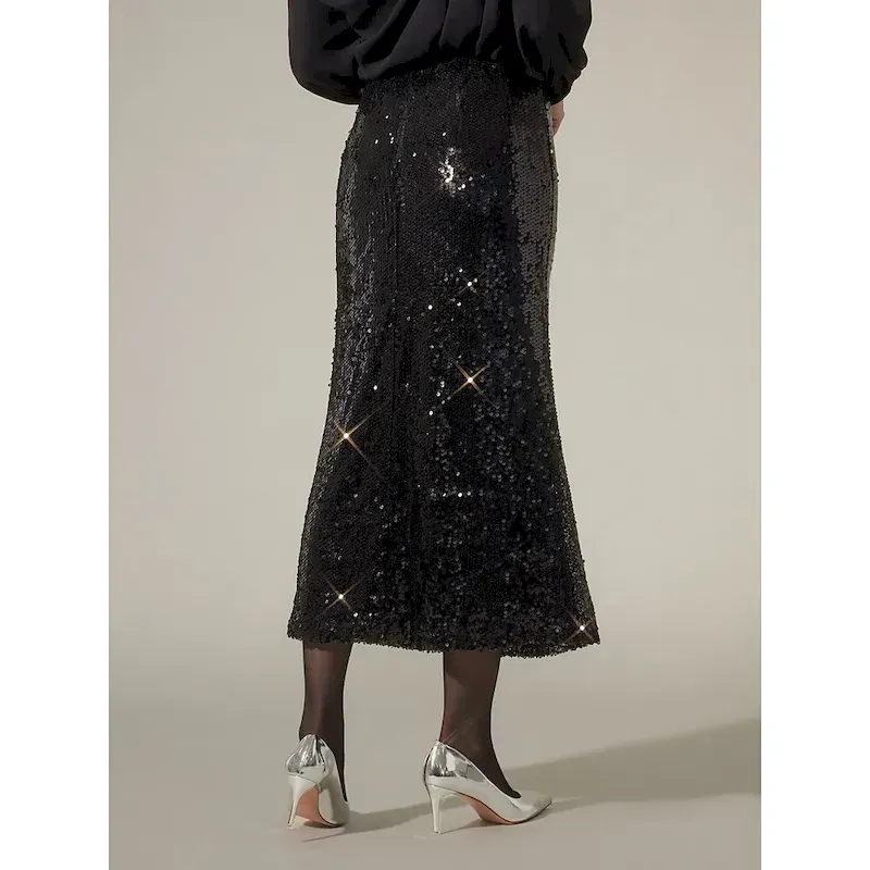 Sequin Glitter Vintage Lined Party Midi Skirt