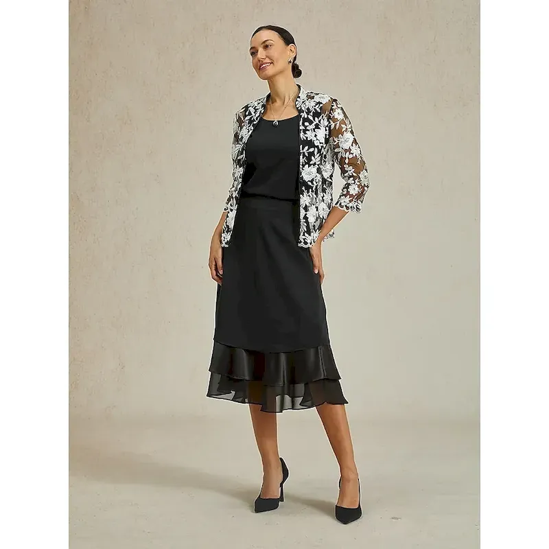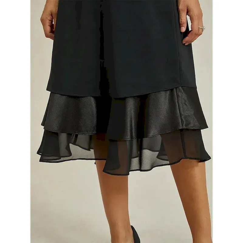 Women’s A Line Elegant Fashion Midi Mid Waist Skirts Ruffle Layered Inelastic Valentine’s Day New Year Black Spring Chiffon