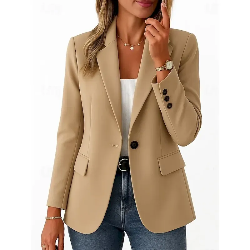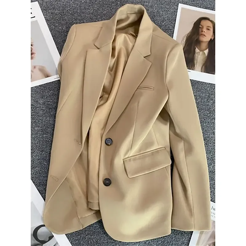Women’s Blazer Comfortable Breathable Pocket Casual Plain Office Street Casual Daily Wear Single Breasted Regular Turndown Regular Fit Long Sleeve Outerwear Black Pink Khaki Summer Spring