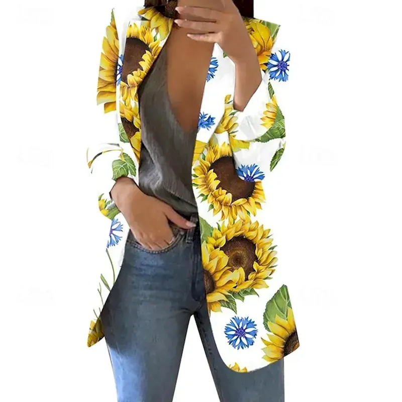 Women’s Blazer Comfortable Print Elegant Fashion Casual Floral Going out Casual Daily Cardigan Regular Lapel Regular Fit Long Sleeve Outerwear Yellow Pink Blue Spring Fall