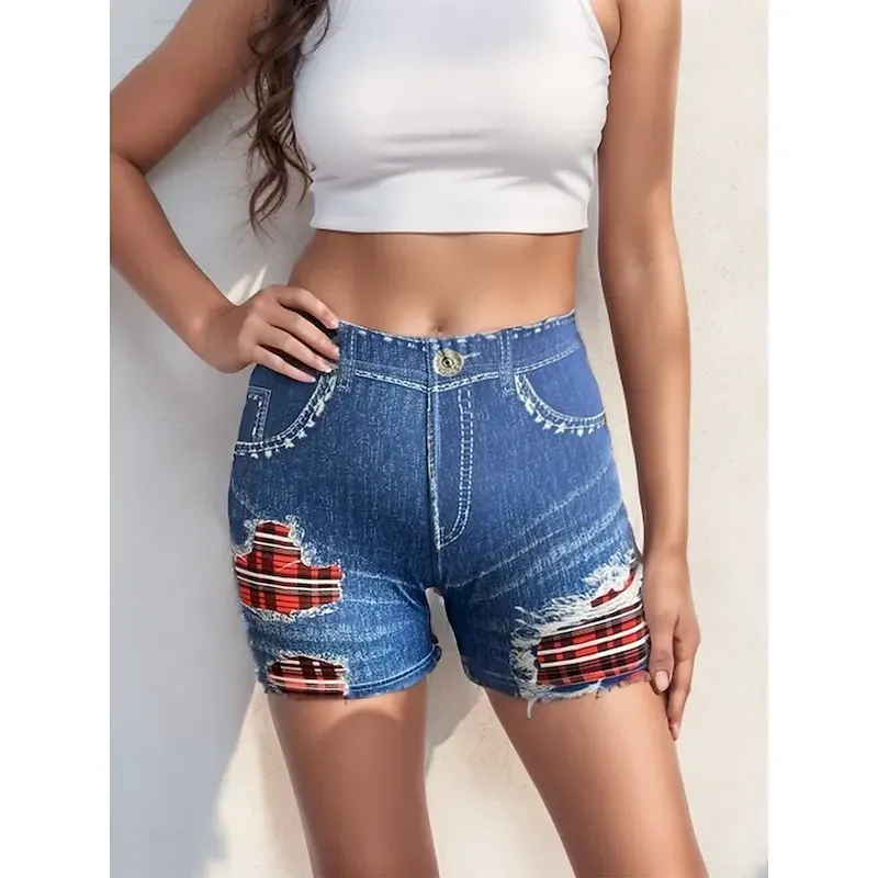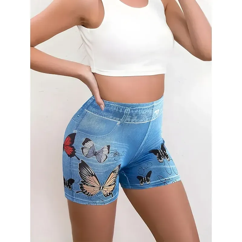 Women’s Leggings Shorts 3D Print Chinos Vacation Vintage Streetwear Short High Waist Plain Printing Comfy Soft Comfortable Stretchy Outdoor Vacation Street Navy Blue Royal Blue Blue Summer Slim Fit