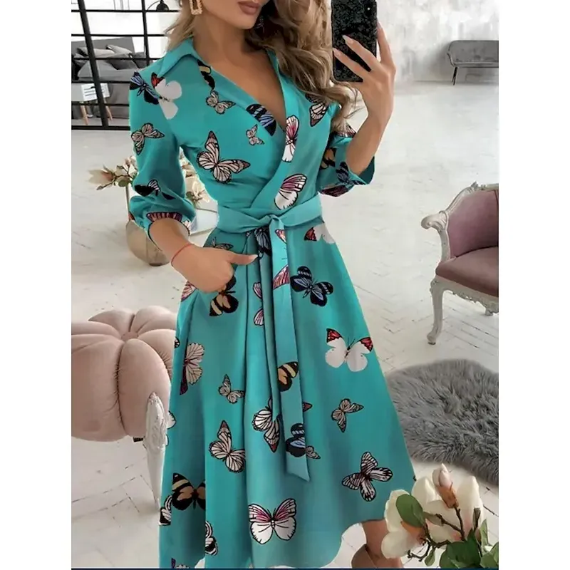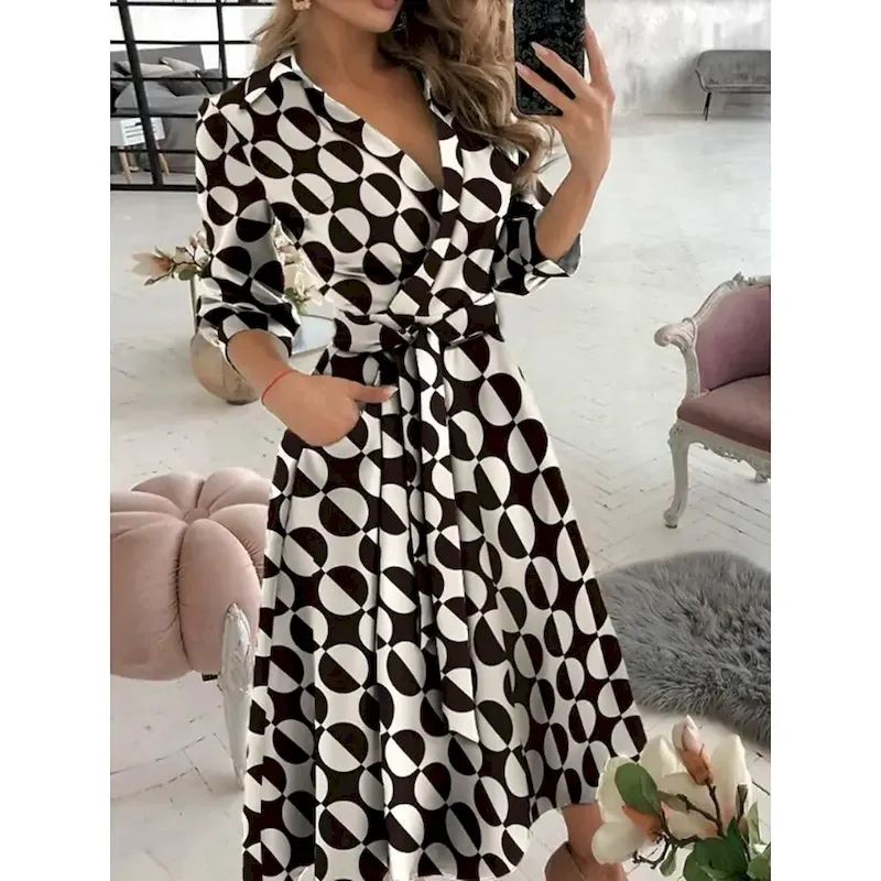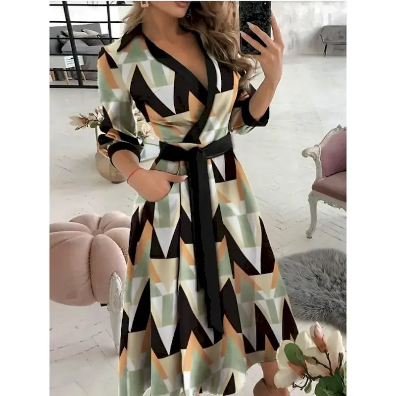 Women’s Midi Dress Casual Dress A Line Dress Stylish Casual Vacation Daily Regular Fit Graphic Geometric 3/4 Length Sleeve V Neck Black White Blue Green Summer