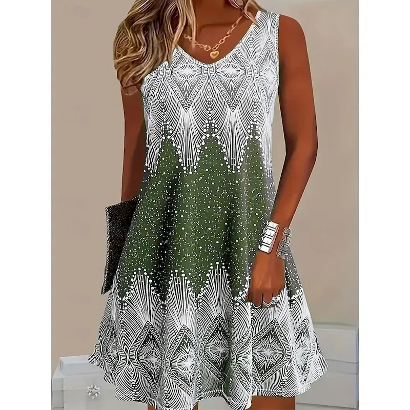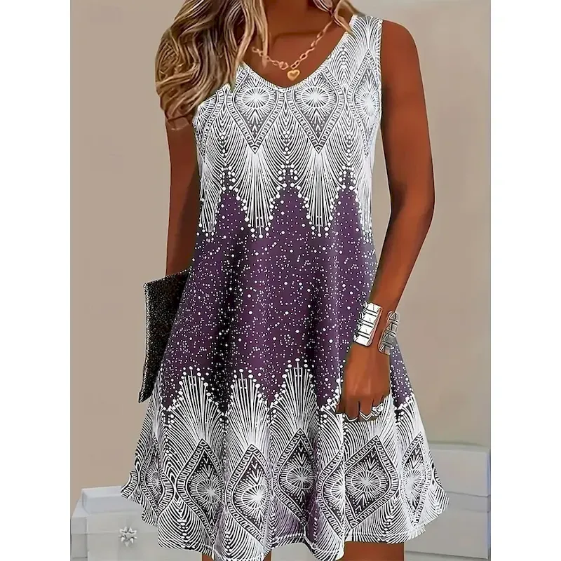 Women’s Mini Dress Sundress A Line Dress Summer Dress Casual Daily Beach Regular Fit Ombre Graphic Galaxy Sleeveless Crew Neck V Neck Light Green Blue Light Purple Summer Spring