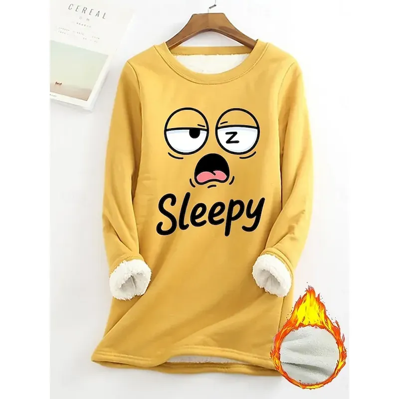 – Stay warm and stylish in this winter season with our polyester fleece lined top- Specifically designed for women- Long tops with a crew neck neckline for added comfort- Featuring a trendy letter print design- Keep cozy in a fleece lined top that’s perfect for staying warm in the cold weather