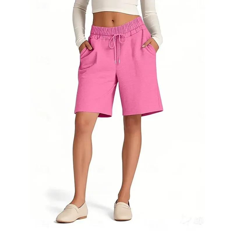 Women’s Shorts Chinos Vacation Fashion Streetwear Short High Waist Plain Pocket Elastic Waistband Comfy Soft Comfortable Stretchy Outdoor Street Pink Navy Blue Brown Gray Summer Spring Regular Fit