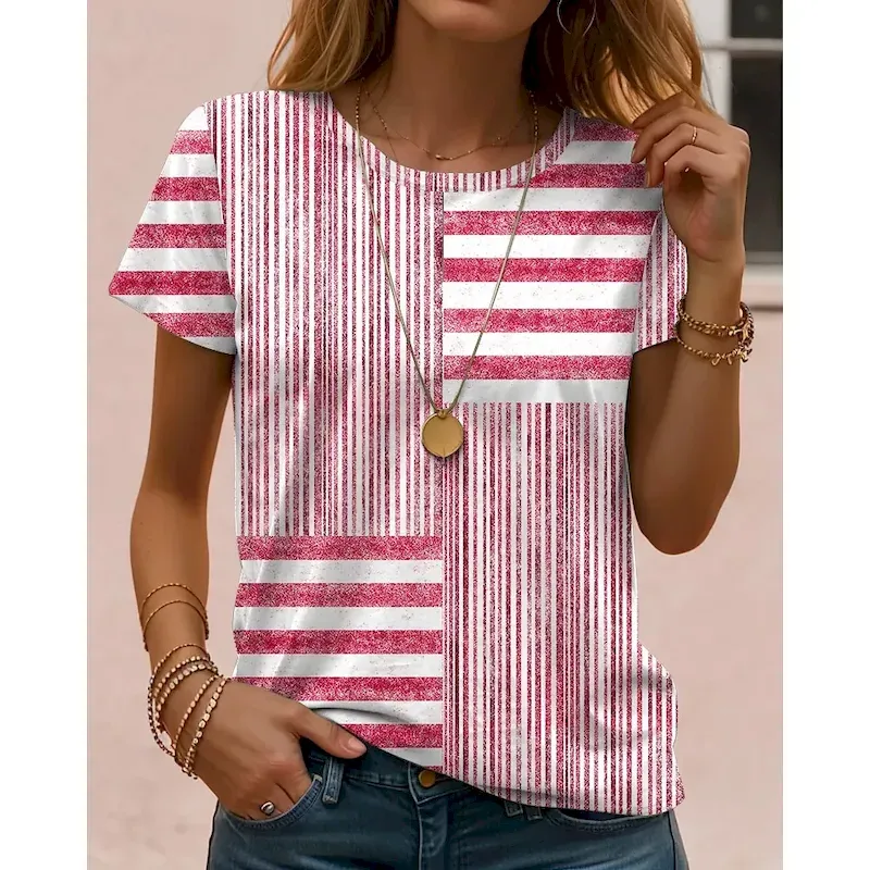 Women’s T Shirt Graphic Geometric Vintage Classic Casual Short Sleeve Crew Neck Regular Tops Daily Weekend Beach Wear Print Red Blue Purple Gray Summer Spring