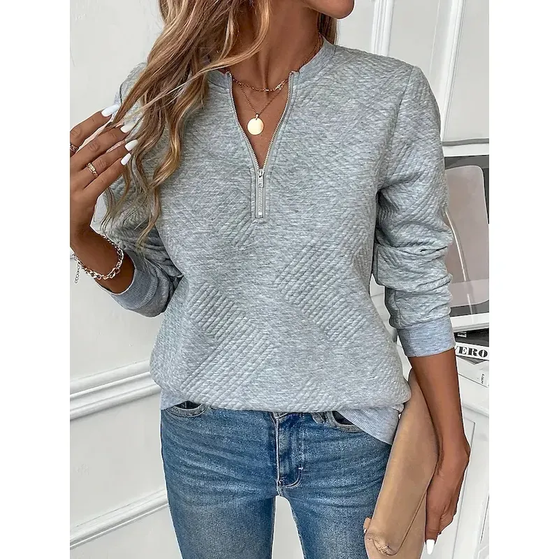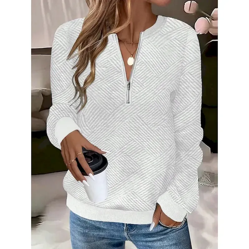 Women’s Texture Sweatshirt Quarter Zip Sweater Casual Plain Street Dailywear Crew Neck Zipper Long Sleeve Black White Red Gray Fall Winter